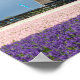 Poster de um moinho de vento tradicional, engatinhado, atrás de um cheio de campo de flores cinzentas e roxas, rosas, num primavera dia perto dos jardins de Keukenhof, na região de Bulb, na Holanda.