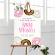 Faça uma encantadora primeira impressão com este sinal de boas-vindas personalizado do bebê borrifador, que apresenta uma cor-de-água rosa, chocolate branco e rosquinhas de chocolate com cobertura de chocolate com borrifagem colorida. Projetada com uma paleta encantadora, esta placa de chá de fraldas "It's a Girl" é perfeita para acolher convidados para a sua doce celebração. Personalize facilmente o texto para incluir o nome do seu bebê, a data do evento ou a mensagem especial. Este sinal de boas-vindas cor-de-rosa para chás de fraldas é ideal para chás de temas rosquinhas, comemorações de aspersão ou qualquer evento de menina doce.