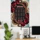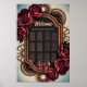 Poster Moldura Steampunk com Rosas vermelhas e engrenagen