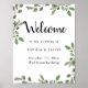 Esta adorável poster de boas-vindas do casamento apresenta folhas verdes, simples e aquáticas, sobre um fundo branco e limpo. Texto serif moderno misturado à tipografia da escrita de tendências adiciona um novo olhar para tornar este sinal perfeito para um casamento rústico, minimalista ou botânico elegante no exterior. Há espaço para seus nomes, data e até sua hashtag de casamento.