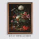 Os holandeses e os flamengos acolheram com extraordinária satisfação as representações do mundo natural como expressão da eterna bênção de Deus. As pinturas florais de Jan Davidsz de Heem celebram a beleza da flora enquanto, ao mesmo tempo, exemplificam o conceito de Ars longa, vita brevis (arte longa, vida curta) incorporada nas pinturas holandesas do século XVII. As pinturas de De Heem refletiam também o interesse excelente pela botânica na época, e este trabalho inclui flores exóticas e plantas trazidas de lugares distantes, como a tulipa, originalmente importada da Turquia para a Europa nos anos 50. A resolução da imagem é 300 ppi e o Dimension é 7208 x 8876 . Melhor impressão de até 20" x 25".