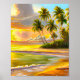 Red Orange Palm Trees Beach Tropical Sunset Poster.