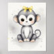 Macaco giro preto e branco com um toque de cor amarela na fita.