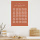 Gráfico de assentos laranja de terracotta, poster, apresenta uma bela tipografia que combina um tradicional roteiro de caligrafia florescente com a letra clássica de bloco. O texto personalizado pode ser totalmente personalizado com um monograma dos nomes da noiva e noiva, a data do casamento, os nomes de convidados e suas atribuições de mesa. Por favor, compre nossa Coleção de Casamentos Laranja Clássica Terracotta para coordenar designs.
