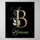 Poster Monograma de letra B com folhagens eucalipto doura