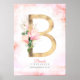 Poster Monograma de letra B Folhas Douradas Flor de Magnó