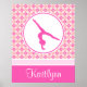 Poster para ginastas com um design de diamantes de cor-de-rosa. Um padrão de diamante de dois tons no fundo com um gráfico de ginástica rosa no topo. Ele inclui um campo de texto personalizado para o seu nome! ©gollygirls.com