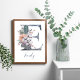Personalize esta adorável cor d'água floral azul Carta E Wall Art Poster/impressão. Adicione seu sobrenome ou nome próprio. Faz um presente de excelente para um casal, presente de casamento, presente de chá de panela ou para um amigo.