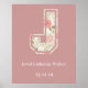 Monograma - Letra J cor-de-rosa, nome de bebê floral e data de nascimento, arte de criação de muros