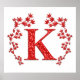 Póster Monograma - Letra K Folhas Vermelhas