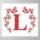 Poster Monograma - Letra L, Folhas Vermelhas