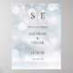 Este sinal de boas-vindas de casamento de inverno minimalista e elegante pode ser personalizado com suas iniciais de monograma e informações do dia do casamento em um fundo de floco de neve. Criado por Thisisnotme©