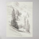 Poster Montanha alpina e árvores esboço, vindimagem,