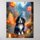 Poster Montanha do Halloween Bernese com Pumpkins assusta
