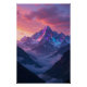 Imagem foto-realística, de alta definição de uma majestosa cadeia de montanhas sem marca, com picos brilhando em tons iridescentes e mães de pérolas. O dramático céu do pôr do sol banha a cena em cores vibrantes, surreais, cor rosa, laranja e violeta profunda, enquanto a neblina de baixa altitude flutua pelos vales. Uma grande parte do céu proporciona amplo espaço de cópia, criando uma atmosfera grandiosa, sonhadora e evocativa perfeita para fantasia, inspiração ou designs de temas viagem.