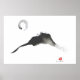 Montanha pintada em tinta típica de sumi preto com um Enso para a lua. Sumi-e é uma pintura de tinta Zen estilo japonês. Artista sumi-e - Andrea Erickson