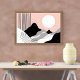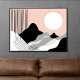 Esse abstrato minimalista apresenta montanhas rolantes em tons de preto e branco, colocadas contra um pano de fundo rosa suave. Um grande círculo branco representa o sol da ascensão, adicionando um toque de calor e serenidade à cena. As linhas limpas e formas simples criam uma estética moderna e elegante que complementará qualquer espaço interior.
