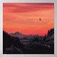 Poster Montanhas Orange Sunset Bird, no céu