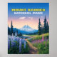 Sunset sobre Monte Rainier e Montanhas Cascata e um vale de flores silvestres no Parque Nacional do Monte Rainier. O Parque Nacional do Monte Rainier, localizado no estado de Washington, foi criado em 1899 como quinto parque nacional nos Estados Unidos e está centrado em torno do icônico e coberto de geleiras Monte Rainier, um estratovolcano ativo de 14.411 pés. Entre as principais atrações contam-se a paisagem do Paraíso, famosa pelos seus prados de flores silvestres e pelas visões panorâmicas das montanhas, e a zona de Sunrise, o ponto mais alto do parque acessível de carro, que oferece vistas incríveis de Rainier e picos circundantes. Visitantes também gostam de explorar o Caminho das Maravilhas, um desafiador rastro de 93 milhas que circunda a montanha, e ver cachoeiras como Narada Falls e Myrtle Falls.