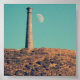 Uma coluna alta no topo da colina com a Lua no céu. Beleza surreal.