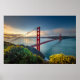 Esta incrível foto do Getty Images apresenta uma vista elevada da ponte Ouro Gate no nascer do sol com São Francisco na vista.