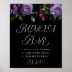Elegante placa de bar de casamento floral mimosa apresentando uma borda superior de flores roxas e burgundy com folhas verdes e bagas escuras. O design floral roxo moderno é complementado pela tipografia caligráfica moderna. Personalize o sinal de bar mimosa do casamento com seu texto personalizado. O casamento floral gótico é perfeito para ser exibido em seu casamento outono, chá de panela, chá de fraldas, festa de aniversário ou evento especial. Projetado para coordenar com a nossa coleção de casamento Moody Gothic Floral.