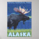 Moose at Night - Denali Nat'l Park, Alaska - Poster de Viagens vintage foi criada em 2007. Esta imagem mostra cenas do Parque Denali Nat'l, AK.