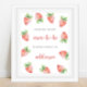 Chá de fraldas bonito com ilustração aquosa de morangos. "um bebê doce de fruta está a caminho." Itens correspondentes disponíveis.