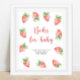 Chá de fraldas bonito com ilustração aquosa de morangos. "um bebê doce de fruta está a caminho." Itens correspondentes disponíveis.