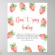 Chá de fraldas bonito com ilustração aquosa de morangos. "um bebê doce de fruta está a caminho." Itens correspondentes disponíveis.