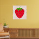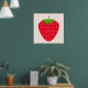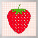 Belo design de morango vermelho brilhante, com um topo verde e um padrão de verificação de gingham de rosa claro.