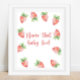 Convite para chá de fraldas em branco com ilustração aquosa de morangos. "um bebê doce de fruta está a caminho." Itens correspondentes disponíveis.
