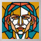 Poster Mosaic Geometric Portrait in Amber and Teal