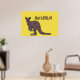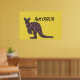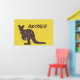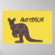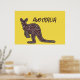 Poster apresenta a silhueta de canguru em um padrão de mosaico original em fundo amarelo com "Austrália" em texto verde