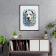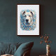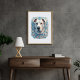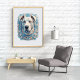 Este poster de cão tem um design urbano e sofisticado. O esquema de cores azuis legal irá adicionar um sotaque ao seu quarto. Recomendado para amantes de cães e amantes de arte. Quadro não incluído.