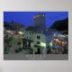 A poster com a fotografia dos edifícios ao lado da Ponte Velha em Mostar, Bósnia e Herzegovina.
