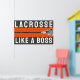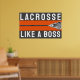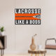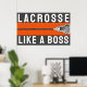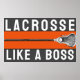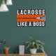 Cartaz incrível de lacrosse com um taco de lacrosse e citação original: Jogue lacrosse como um chefe.