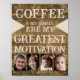 Este poster com moldura apresenta um design rústico com a citação "Café e Minha Família São a Minha Maior Motivação". O impressão tem quatro fotos da família, que podem ser substituídas por suas. Esta poster é uma maneira excelente de mostrar seu amor pela sua família e café, e isso faria uma adição perfeita a qualquer casa. O design rústico da poster é perfeito para qualquer fazenda ou casa rústica. As quatro fotos da família são uma forma excelente de mostrar seus entes queridos. Se você está procurando uma maneira única e pessoal de decorar sua casa, este poster é uma opção de excelente. Tem certeza de trazer um sorriso à sua cara toda vez que você o vê. As fotos têm um filtro ativado (filtro San Telmo do zazzle) que irá filtrar automaticamente suas próprias fotos. O esquema de cores é um fundo gráfico de madeira escura e escura com texto bege/creme.