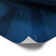 Um motoqueiro esqueleto andando de porco e fumando um cigarro. O fundo é um túnel azul girando.