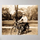 Imagem vítrea de um homem numa moto precoce. Cerca de 1900-1930?