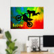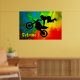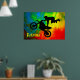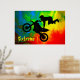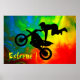 A ação desportiva e a energia dos motocicletas são captadas em silhuetas de figuras de ação que demonstram truques e acrobacias extremos nas suas motocicletas. As pinturas digitais e ilustrações desses adolescentes e jovens homens incluem fundo de cores brilhantes, vívidas e salpicos de luz para destacar a ação. Eles também se mostram em cenas graciosas e frias nas estradas onde os competidores ganham seus fundos de rua mostrando suas habilidades em motocross.