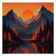 Póster Mountain Sunset Reflection Fiery Orange Sky