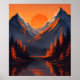 Poster Mountain Sunset Reflection Fiery Orange Sky