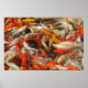 Muitas carpas koi (Cyprinus - Fish) multicolores na superfície da água