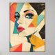 Poster Mulher Abstrato Geométrica com Olhos Aqua