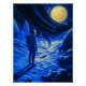 Uma ilustração digital de uma mulher astronauta em um estilo de arte duotônico de azul e dourado.