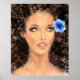 Poster Mulher bonito com Flor Azul - Pintura Original