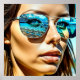Poster Mulher bonito com Reflexão de Óculos de Sol de Pra