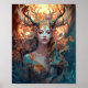 Poster Mulher com Antlers Fantasy Art