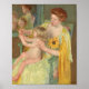 Mulher de girassol (1905) pela artista impressionista americana Mary Cassatt. Arte original é uma pintura a óleo na canvas que mostra o retrato de uma mãe vestindo um vestido amarelo e girassol, olhando para um espelho com sua filha jovem no colo. Use as ferramentas de design para adicionar texto personalizado ou personalizar a imagem.